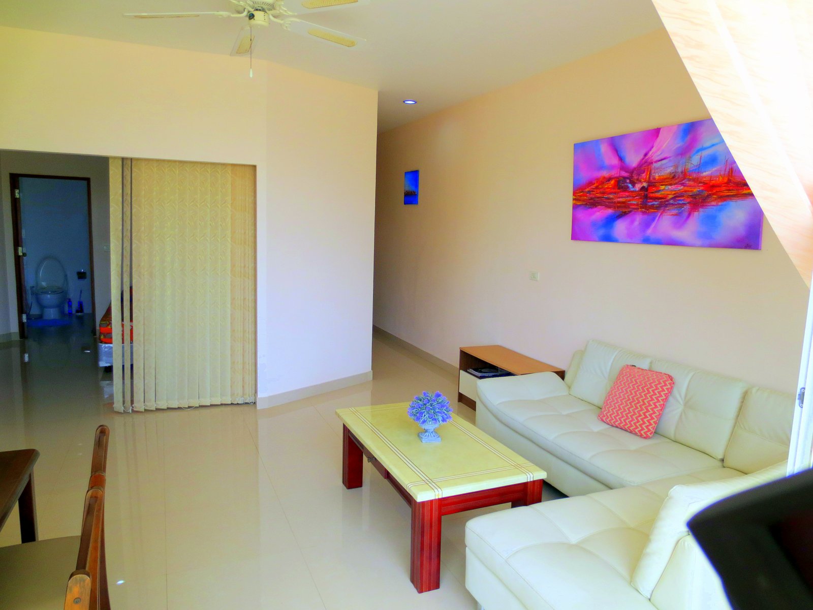 This wonderful 2 bedroom, 2 bathroom apartment is located In Rawai on the peaceful hill. Rawai Beach is a short walk away. Apartment offers excellent rental potencial or quiet comfortable living.